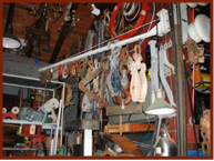 This is no accumulation of Antique Road Show booty. This is a Personal Assemblage Museum of "Look at these great things I found " gadgets, gizmos, ‘wires, tires and armatures’. Small stuff, big stuff and great big stuff. It presents itself as an evolving arrangement that only grows at the hand and the whim of it's creator. Though I do recall Frank saying, “. . sometimes it's the barn that’s in charge”.